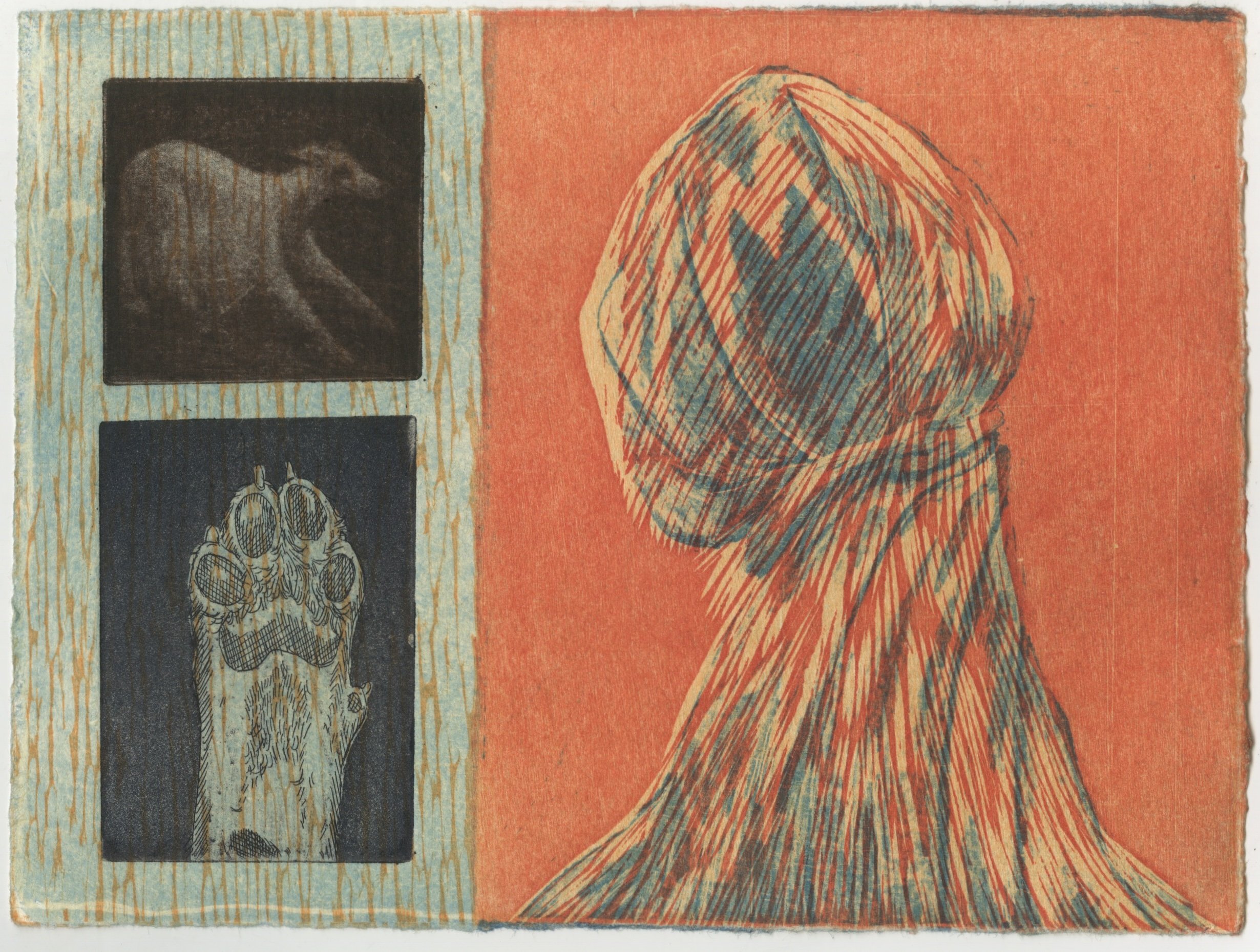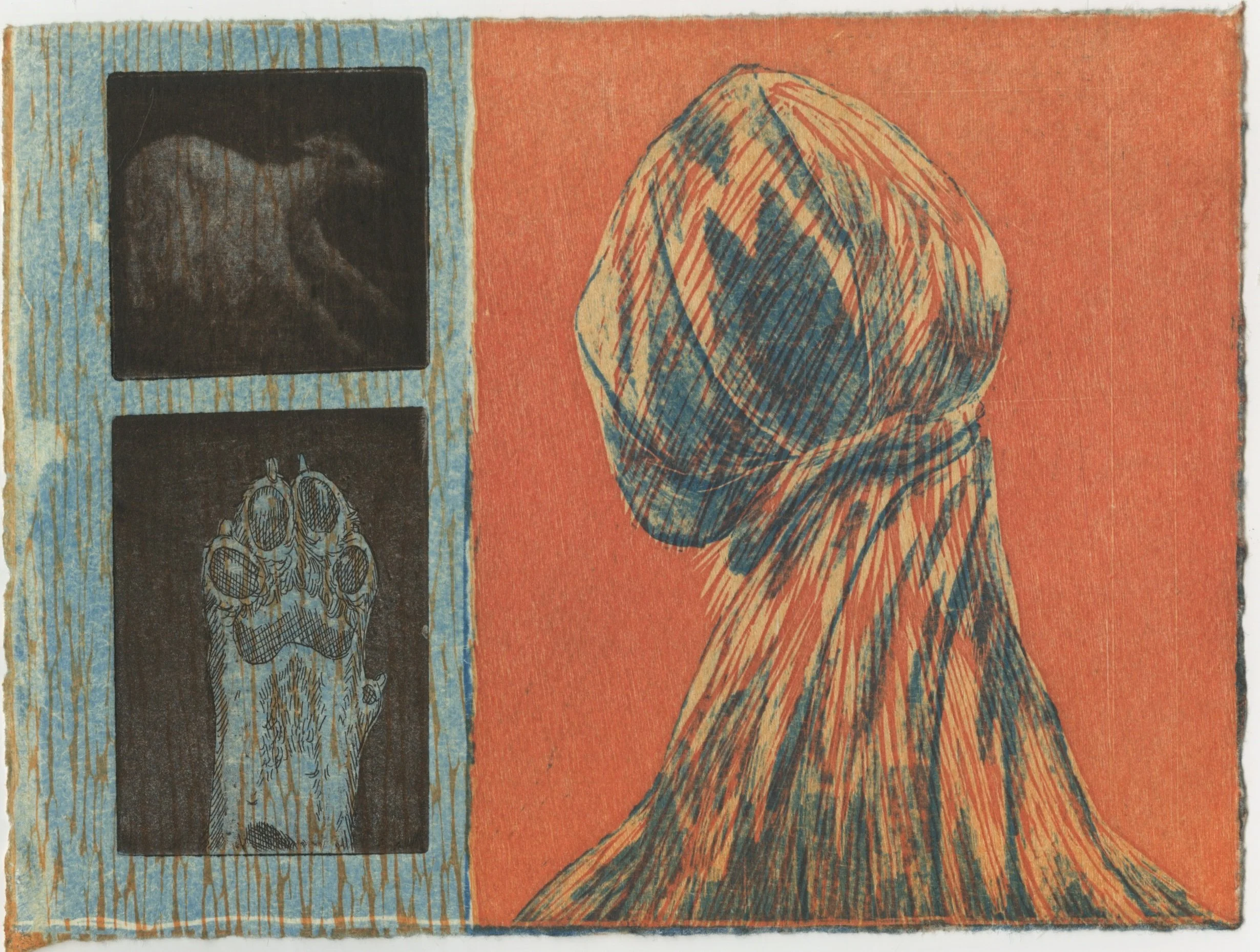 untitled (dog), 4”x7”, cyanotype, reduction woodcut, mezzotint, etching. var. ed. of 4. 2025.